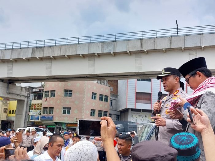 Kapoltabes Palembang Kombes Pol Mokhamad Ngajib SIK, didampingi oleh Kasat Intel Polrestabes Palembang mengatakan bahwa hasil koordinasi disepakati bahwa aksi tidak dapat dilanjutkan karena telah diatur dalam UU No. 9 Tahun 1998 tentang Penyampaian Pendapat di Muka Umum sebagaimana dalam UU Nomor 9 tahun 1998 pada pasal 15 menjelaskan bahwa salah satu tempat yang dilarang untuk melakukan Aksi Unjuk Rasa di seputaran Rumah Ibadah, seperti ketahui bahwa Bundaran air mancur masih dalam seputaran kawasan masjid sehingga untuk menghormati dan memberikan rasa kenyamanan kepada masyarakat yang sedang menjalankan ibadah tidak terganggu dengan adanya aktivitas aksi unjuk rasa.
