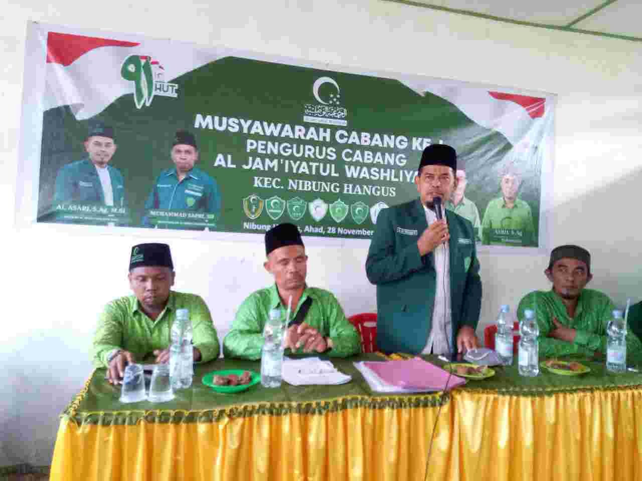 Hal tersebut disampaikan Pengurus Daerah (PD) Al Washliyah, Ustadz Al Asari, saat membukan Muscab I Al Washliyah Kecamatan Nibung Hangus, di Gedung Madrasah Tsanawiyah (MTs) Al Washliyah Lima Laras, Kecamatan Nibung Hangus Kabupaten Batu Bara Sumatera Utara. Ahad (28/11/2021).