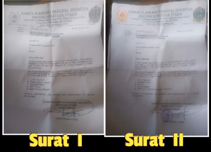 Lanjut nya yang anehnya Pemprov KONI Sumut mengeluarkan Dua surat untuk pengiriman Atlet Tenis Meja tersebut yang juga ditanda tangani oleh Ketua KONI Sumut Jhon Ismadi Lubis