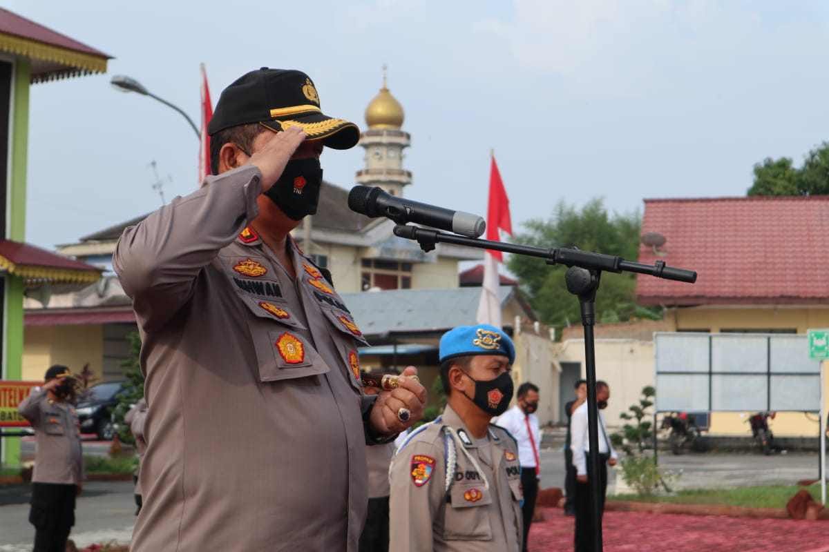 Batu Bara, kedannews.com – Kapolres Batu Bara Ikhwan Lubis SH MH Pimpin Apel Gelar pasukan Keselamatan Toba 2021 di Halaman Mako Polres Batu bara. (12/4/2021).Perwira Apel AKP Eridal Fitra, SH dan Komandan Apel IPDA Elon Sitinjak, SH.