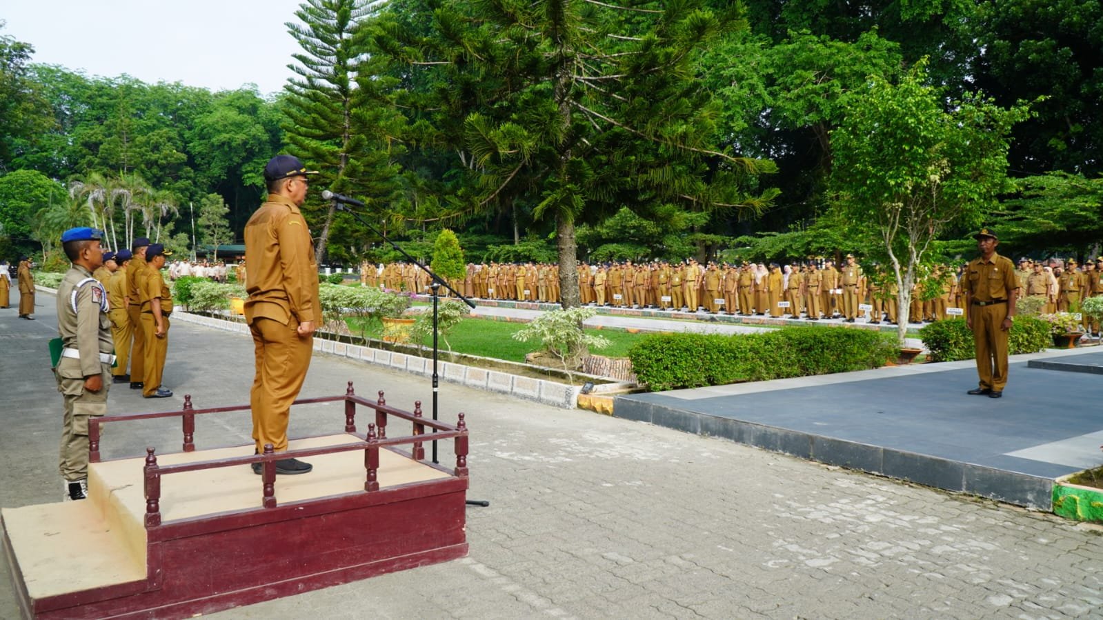 Bertindak sebagai perwira apel Kabag Pengadaan Barang dan Jasa David Helgod Pardede S.IP,M.SP, pemimpin apel Erwan,SE, Pengucap panca Prasetya Korpri Lindawati dan pengucap ASN berakhlak, Rizky Sembiring (Staf Dinas Kependudukan dan Pencatatan Sipil).