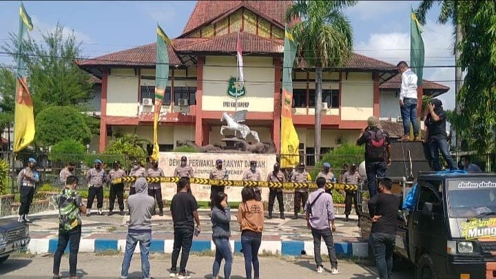 Ia menambahkan, “Perlu diketahui bahwa Dewan itu telah dikasih makan kesejahteraannya oleh kami rakyat Indonesia dan makan dari uang kami sebagai rakyat, namun apa yang terjadi, mereka tidak mendengar terhadap apa yang sudah memberi kesejahteraan. Oleh sebab itu, kami meminta kepada dewan untuk mendengarkan aspirasi yang merupakan suatu kewenangan dari pada dewan untuk mendengar aspirasi kami, mengumpulkan aspirasi rakyat bukan semerta- merta duduk di kursi dewan yang sudah dipersiapkan oleh kami sebagai rakyat,” tukas Korlap Aksi H. Zainal Fattah.
