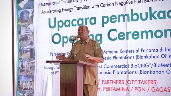 Plt. Bupati Langkat H. Syah Afandin, SH menyampaikan BioMethane baru pertama dijalankan di Indonesia, PT. Ukindo patut dijadikan contoh untuk PT lain di Kabupaten Langkat