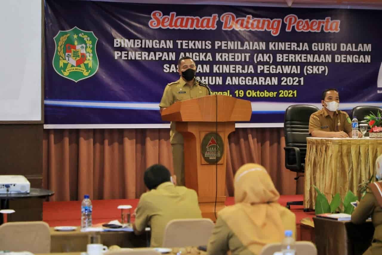 Medan, kedannews.com – Guna meningkatkan kompetensi kualitas Sumber Daya Manusia (SDM) sesuai dengan visi misi Wali Kota Medan Bobby Nasution, Badan Kepegawaian Daerah dan Pengembangan Sumber Daya Manusia (BKDPSDM) Kota Medan menggelar Bimbingan Teknis penilaian kinerja guru dalam penerapan Angka Kredit (AK) berkenaan dengan Sasaran Kinerja Pegawai (SKP) di Hotel Grand Antares, Jalan Sisingamangaraja, Medan, Selasa (19/10).