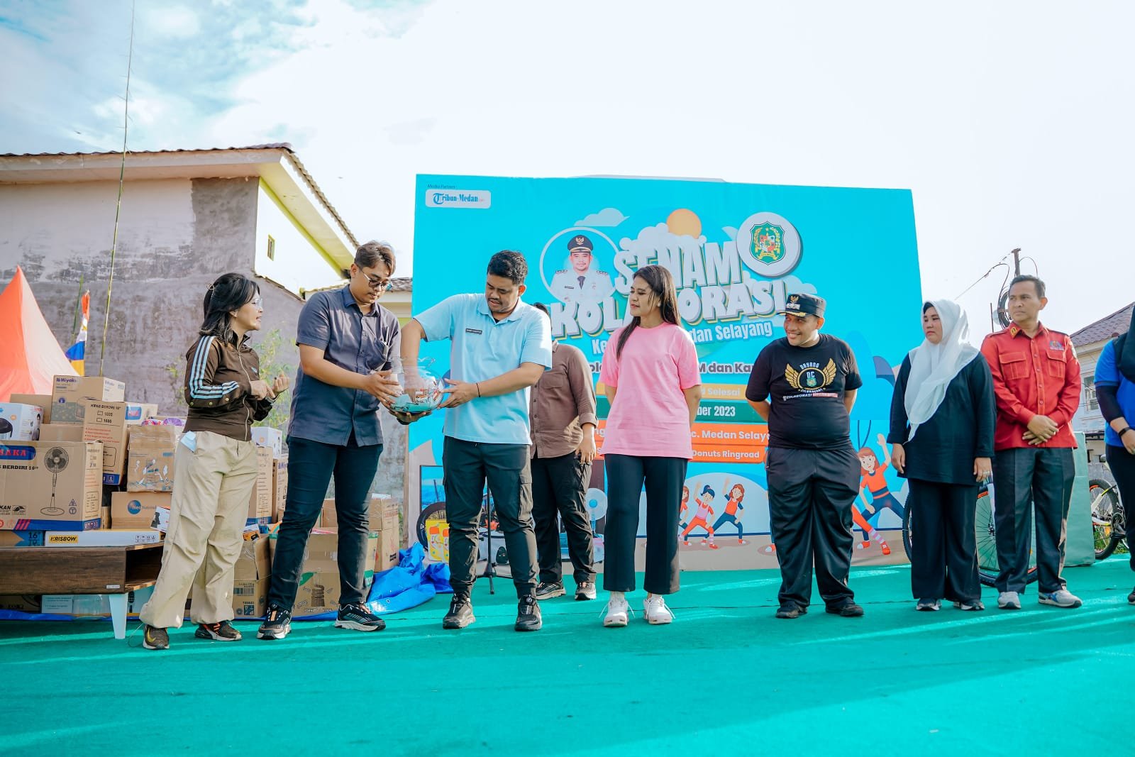 Senam kolaborasi dipungkasi dengan pembagian doorprize dengan sejumlah hadiah menarik. Untuk menentukan siapa peserta yang beruntung, Bobby Nasution bersama Ny Kahiyang, Plt Ketua LPM Kota Medan Rudi Suntari, Camat Medan Selayang Muhammad Husnul Hafiz Rambe serta tokoh masyarakat Brigjend Purn Rajiman Tarigan selanjutnya mengambil nomor undian sekaligus menyerahkan hadiah.