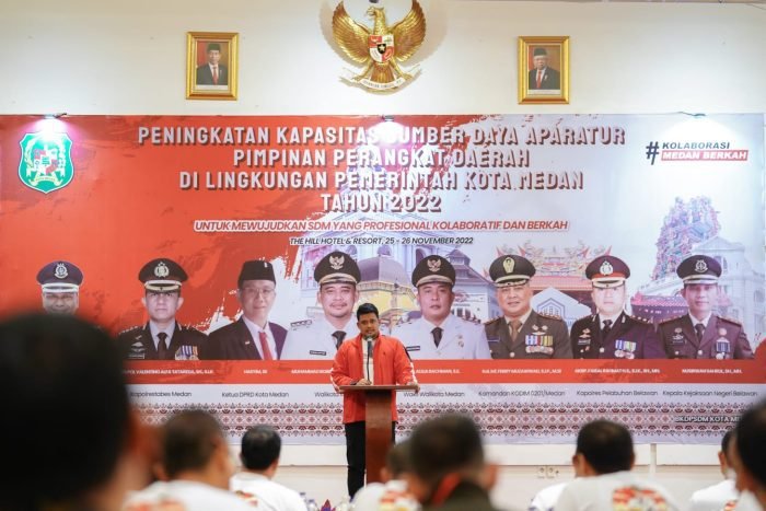 Sibolangit, kedannews.com – Ada dua poin penekanan yang disampaikan Wali Kota Medan Bobby Nasution dalam acara Peningkatan Kapasitas Sumber Daya Aparatur Pimpinan Perangkat Daerah di Lingkungan Pemko Medan Tahun 2022 yang berlangsung di The Hill Hotel dan Resort Sibolangit, Jumat (25/11) malam. Poin pertama harus berani memaafkan dan meminta maaf, sedangkan yang kedua harus dapat berterima kasih.
