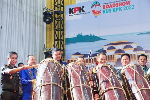 Medan, kedannews.com – Bersama Wakil Ketua KPK Nurul Ghufron, Pj Gubernur Sumatera Utara (Sumut) Hassanudin, Kapolda Sumut Irjen Pol Agung Setya Imam Effendi, Ketua DPRD Sumut Baskami Ginting, Sekdaprov Sumut Arief S Trinugroho, serta Ketua BPK Perwakilan Sumut Eydu Oktain Panjaitan, Wali Kota Medan Bobby Nasution menabuh gordang sembilan yang menandai pembukaan Road Show Bus KPK di Kompleks Tapian Daya, Jalan Gatot Subroto, Medan, Kamis (26/10).