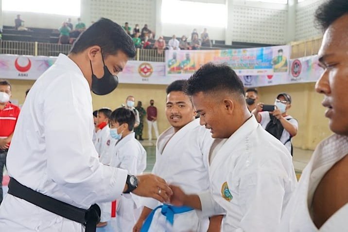 Medan, kedannews.com – Wali Kota Medan Bobby Nasution membuka Kejuaraan Karate Piala Wali Kota Medan tahun 2021 di Gedung Olahraga Gelanggang Remaja, Jalan Sutomo, Sabtu (13/11). Diharapkan kejuaraan Karate ini menjadi wadah untuk mempersiapkan para atlet pada PON XXI Sumut -Aceh 2024 dan semakin terwujudnya Medan sebagai Kota Atlet.