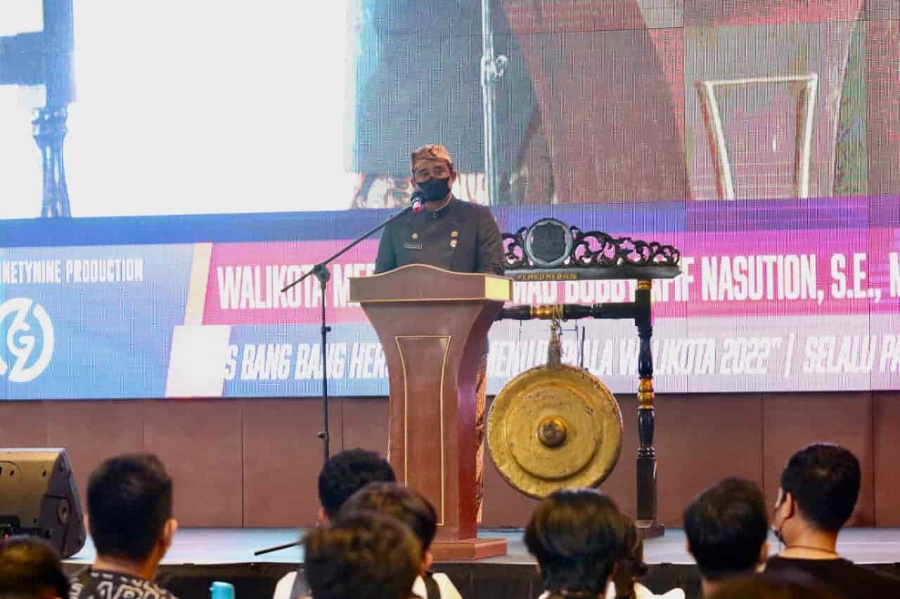 Medan, kedannews.com – Wali Kota Medan Bobby Nasution membuka Turnamen E-sport Mobile Legend Kota Medan di Glass House Jalan Cut Meutia, Jumat (12/11). Olahraga Elektronik yang digelar Dinas Pemuda dan Olahraga (Dispora) Kota Medan ini dalam Rangka Peringatan Hari Pahlawan 2021 sekaligus menuju Piala Wali Kota Medan 2022.