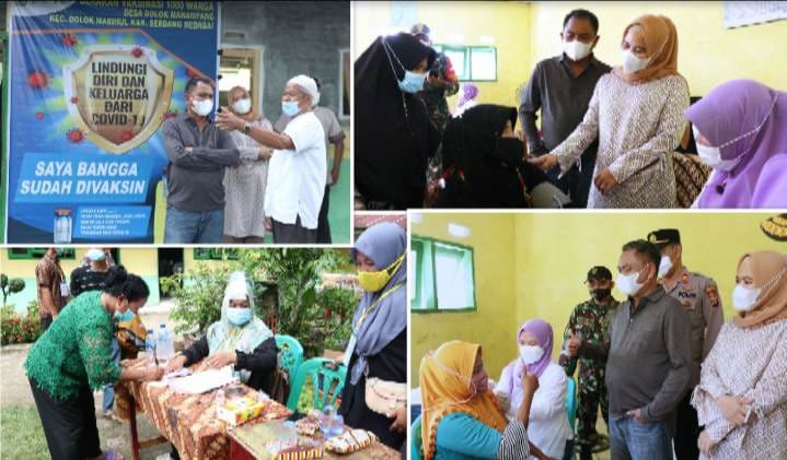 Bupati Sergai H Darma Wijaya saat meninjau kegiatan dengan didampingi Ketua TP PKK Ny Hj Rosmaida Saragih Darma Wijaya mengatakan program vaksinasi kecamatan ini juga sebagai langkah percepatan dan mendukung program pemerintah menuntaskan target 181 juta penerima vaksin.