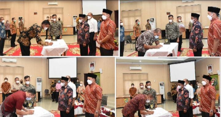 Serdang Bedagai, kedannews.com – Bupati Serdang Bedagai (Sergai) H. Darma Wijaya didampingi Wakil Bupati Sergai H. Adlin Umar Yusri Tambunan, ST, MSP, hadir dalam kegiatan penandatanganan Perjanjian Kinerja Camat se-Kabupaten Sergai yang dilaksanakan di Aula Sultan Serdang, Kompleks Kantor Bupati Sergai, Sei Rampah, Kamis (08/07/2021) Sore.