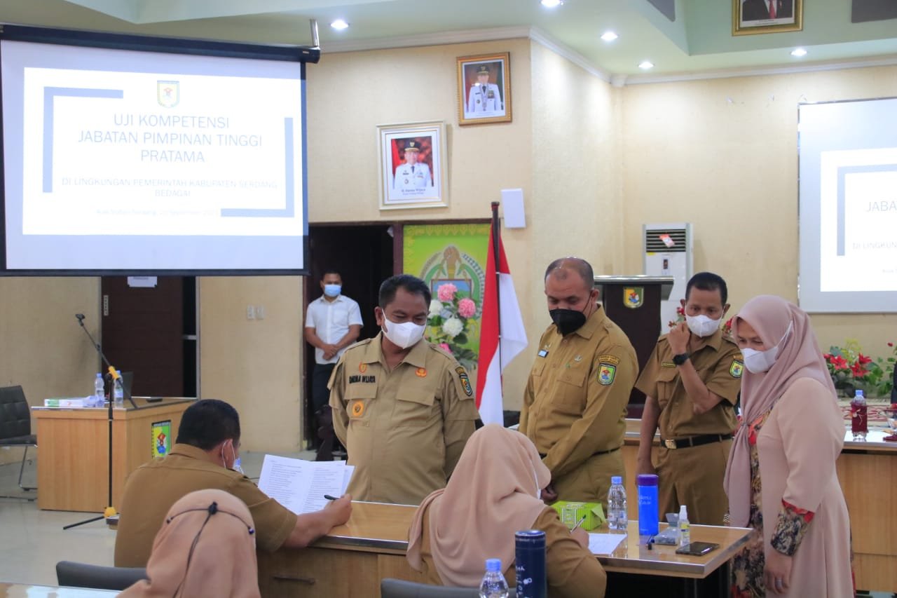 Sei Rampah, kedannews.com – Bupati Serdang Bedagai (Sergai) H. Darma Wijaya meninjau langsung pelaksanaan uji kompetensi Jabatan Pimpinan Tinggi (JPT) Pratama di lingkungan Pemkab Sergai, yang digelar di Aula Sultan Serdang, Kompleks Kantor Bupati Sergai, Sei Rampah, Senin (20/9/2021).