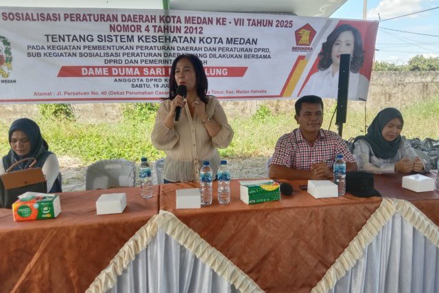 Hal ini disampaikan Dame Duma saat melaksanakan Sosialisasi Peraturan Daerah (Sosperda) No. 4 Tahun 2012 tentang Sistem Kesehatan Kota Medan, di Lapangan Jalan Persatuan, Kelurahan Helvetia Timur, Kecamatan Medan Helvetia, pada Sabtu (19/07/2025). Kegiatan tersebut dihadiri sekitar 800 orang peserta.