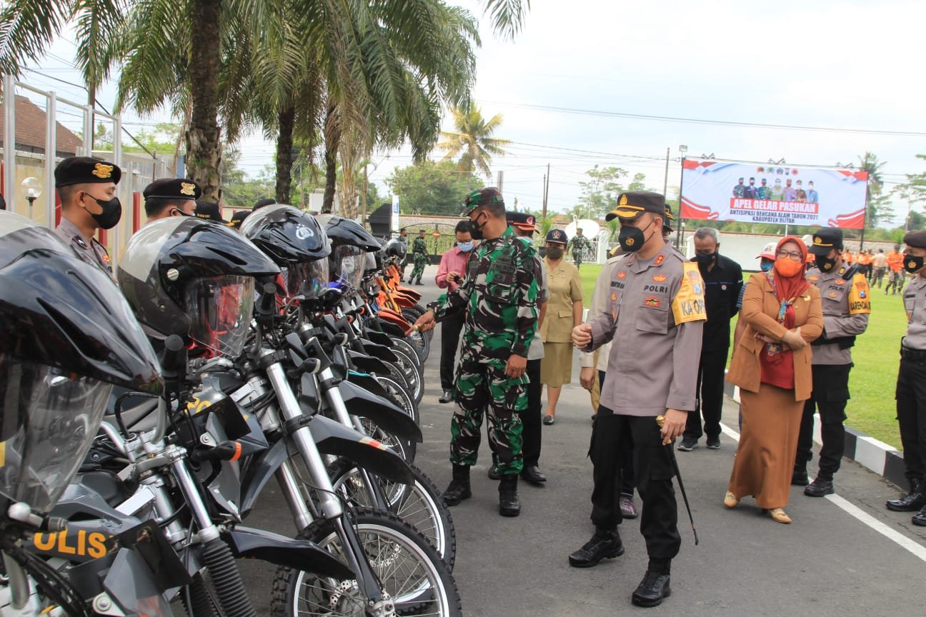 Apel gelar pasukan di halaman Mapolres Blitar ini, diikuti oleh TNI-Polri, Basarnas, BPBD, PMI, Tagana beserta Instansi terkait lainnya, yang dipimpin oleh Wakil Bupati Blitar H. Rahmad Santoso.