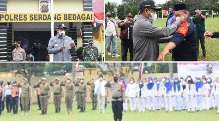 Serdang Bedagai, kedannews.com – Bupati Serdang Bedagai (Sergai) H Darma Wijaya menghadiri Apel Gelar Ops Yustisi, Vaksinator PPKM Mikro dan Kamtibnas di Lapangan Apel Polres Sergai, Sei Rampah, (10/7/2021).