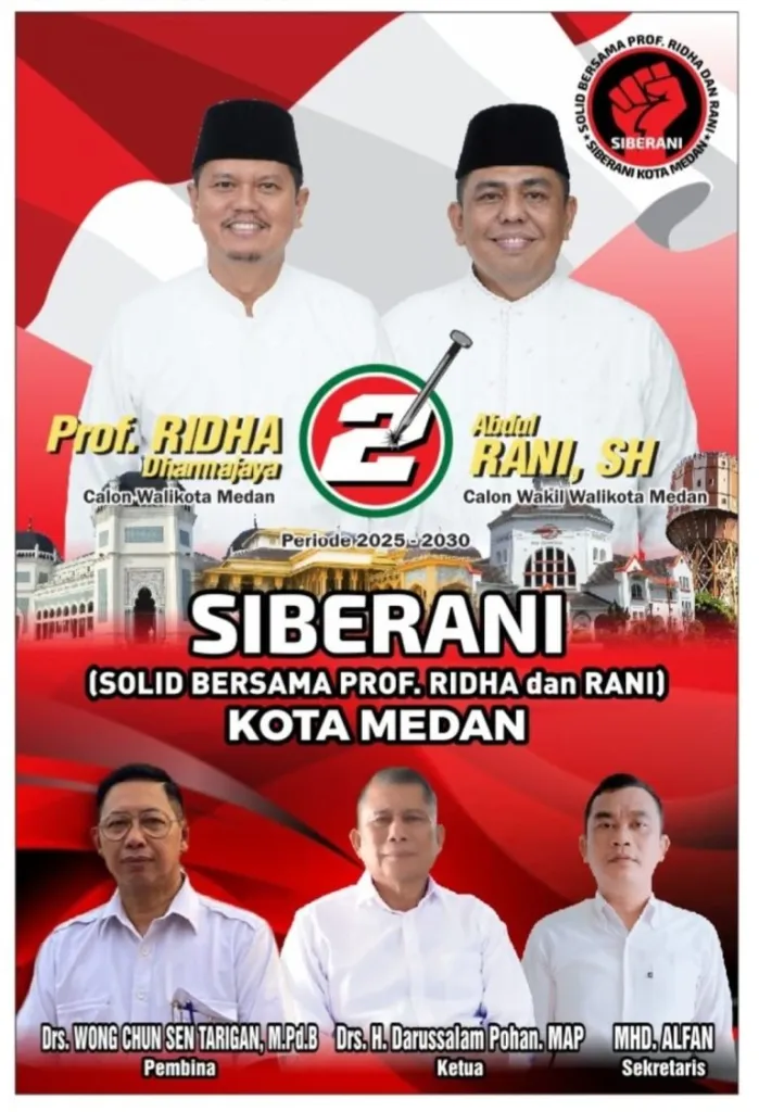 Dikatakan Wong Chun Sen yang saat ini dipercaya menjadi ketua sementara DPRD Kota Medan, SIBERANI membuka seluas-luasnya masyarakat Kota Medan yang memiliki tujuan yang sama untuk memenangkan paslon nomor urut dua (2) Prof. Ridha dan Abd. Rani sebagai calon Walikota dan calon Wakil Walikota Medan tahun 2024.
