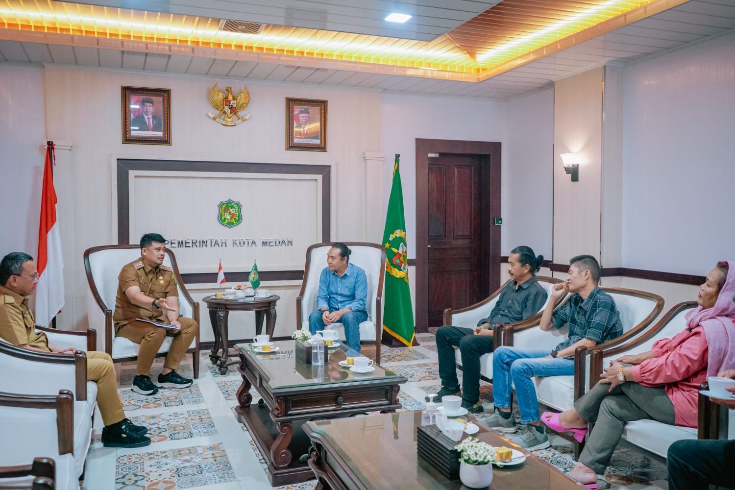 Wali Kota Medan Bobby Nasution menyampaikan hal tersebut saat menerima kehadiran sejumlah pelaku seni Kota Medan yang tergabung dalam Medan Theater Tronic di Balai Kota Medan, Selasa (25/7) siang. Dalam pertemuan itu, Bobby Nasution turut didampingi Kepala Dinas Pendidikan dan Kebudayaan Kota Medan Laksamana Putra Siregar.
