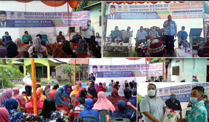 Serdang Bedagai, kedannews.com – Dengan mengikuti anjuran Pemerintah dan mengikuti aturan Protokol Kesehatan (Prokes) pada masa Pandemi Covid-19, Dimas Tri Adji, S.I.Kom Anggota DPRD Sumut dari Fraksi NasDem Dapil IV Kabupaten Serdang Bedagai (Sergai) dan Tebing Tinggi, laksanakan Kegiatan Reses III masa Persidangan II Tahun 2020 – 2021 untuk menyerap Aspirasi dari masyarakat di Desa Pulau Gambar Kecamatan Serbajadi (Pagi) dan Desa Huta Durian Kecamatan Bintang Bayu (Sore), Kamis (8/7/2021).