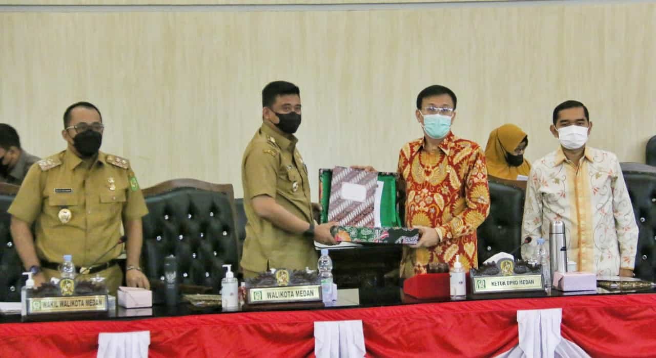 Wali Kota Medan, Bobby Nasution dalam sambutanya secara khusus menyampaikan apresiasi dan terimakasih kepada pimpinan dan anggota DPRD Kota Medan yang bersama-sama dengan Tim Anggaran Pemerintah Daerah (TAPD) telah membahas dengan cermat dan teliti R.APBD TA 2022 yang telah disampaikan sebelumnya sehingga telah disetujui bersama antara Pemko Medan dengan DPRD Kota Medan untuk dapat nantinya dituangkan kedalam peraturan daerah.