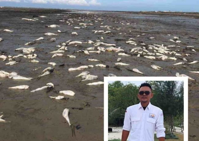Ribuan ikan mati di sepanjang pantai Kuala Indah dan sekitarnya, yang diduga akibat limbah industri, yang beroperasi di perairan Kuala Tanjung.