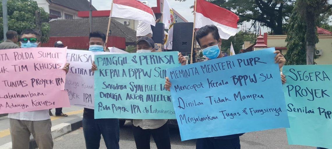 Medan, kedannews.com – Dugaan korupsi menyeruak di Balai Prasarana Permukiman Wilayah (BPPW) Sumatera Utara, Kementerian Pekerjaan Umum dan Perumahan Rakyat (PUPR). Massa DPP Gerakan Rakyat Anti Diskriminasi (GARANSI) mencium aroma persekongkolan jahat terkait pekerjaan pembangunan Instalasi Pengolahan Air (IPA) kapasitas 50 liter/detik dan jaringan perpipaan SPAM IKK Bilah Hilir, Labuhanbatu, senilai Rp 60 miliar lebih.
