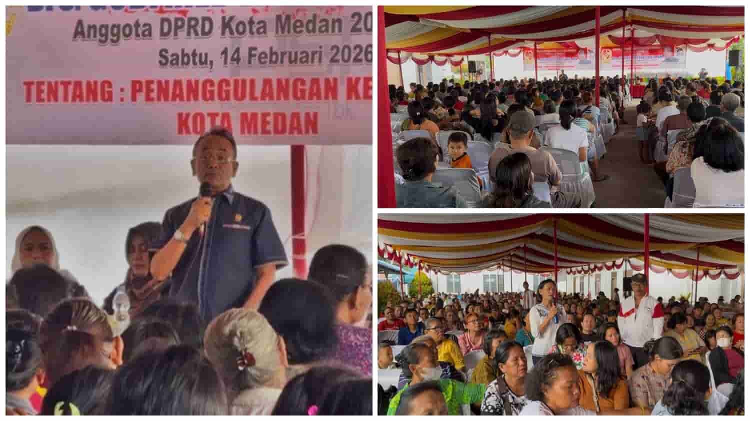 MEDAN, kedannews.co.id – Anggota DPRD Kota Medan dari Fraksi PSI, Godfried Effendi Lubis, menggelar Sosialisasi Peraturan Daerah (Sosperda) Nomor 5 Tahun 2015 tentang penanggulangan kemiskinan di Kota Medan, di halaman Gereja HKBP Bethesda, Jalan Pinguin IX No.445 Mandala Lingkungan 14, Kelurahan Tegal Sari Mandala II, Kecamatan Medan Denai, Sabtu sore (14/2/2026).