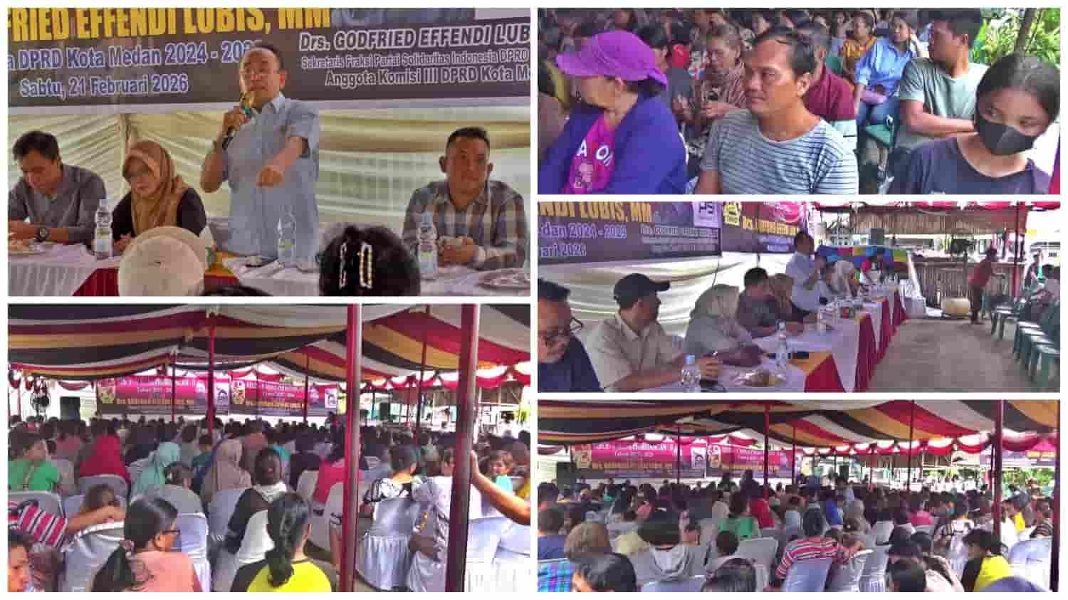 MEDAN, kedannews.co.id – Anggota DPRD Kota Medan dari Fraksi PSI, Godfried Effendi Lubis, menyerap berbagai aspirasi warga dalam kegiatan Reses V Masa Persidangan II Tahun 2025–2026 yang digelar di Lapangan Bulutangkis Jalan Sempurna Ujung Gang Sepakat No.153, Lingkungan 5, Kelurahan Sudirejo I, Kecamatan Medan Kota, Kota Medan, Provinsi Sumatera Utara, Sabtu siang (21/02/2026).