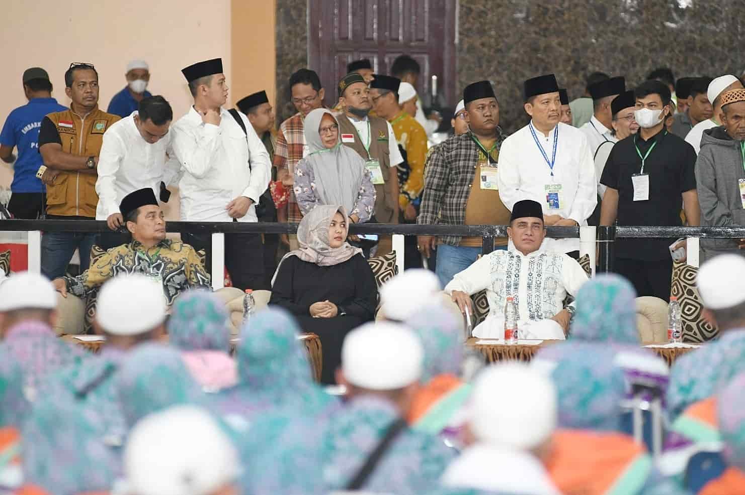 Medan, kedannews.com – Gubernur Sumatera Utara (Sumut) Edy Rahmayadi menyambut kedatangan Jemaah Haji Deberkasi KNO Kloter 1 Sumut di Asrama Haji Medan, Jalan Jenderal Besar AH Nasution Medan, Rabu (5/7/2023) pagi. Jemaah haji Kloter 1 tersebut berasal dari Kabupaten Mandailing Natal (Madina)