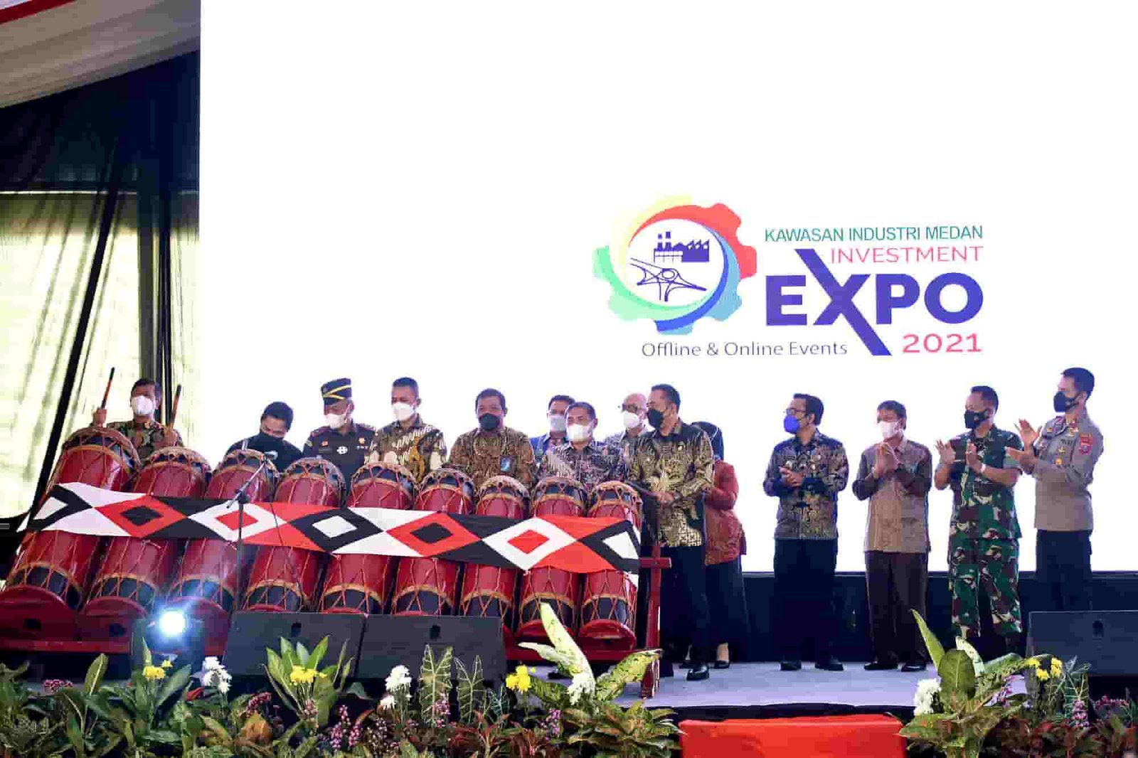 Pembukaan KIM Expo 2021 ditandai pemukulan Gordang Sambilan oleh Menteri BUMN Erick Thohir bersama Wakil Gubernur Musa Rajekshah, dan lainnya. Sebelum meninggalkan tempat, rombongan meninjau lokasi pameran perusahaan BUMN sekaligus pengguntingan pita stan UMKM.
