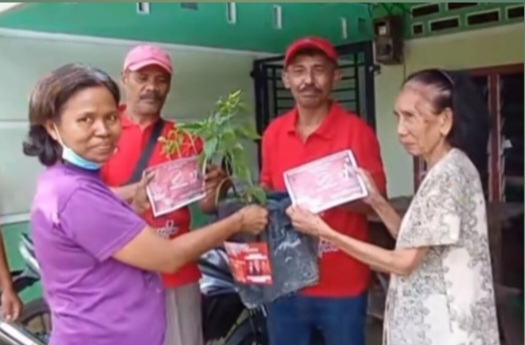“Untuk satu orang kita bagikan 3 bibit untuk ditanam di rumah atau halaman dirawat agar dapat tumbuh besar dan berbuah,”ujarnya.