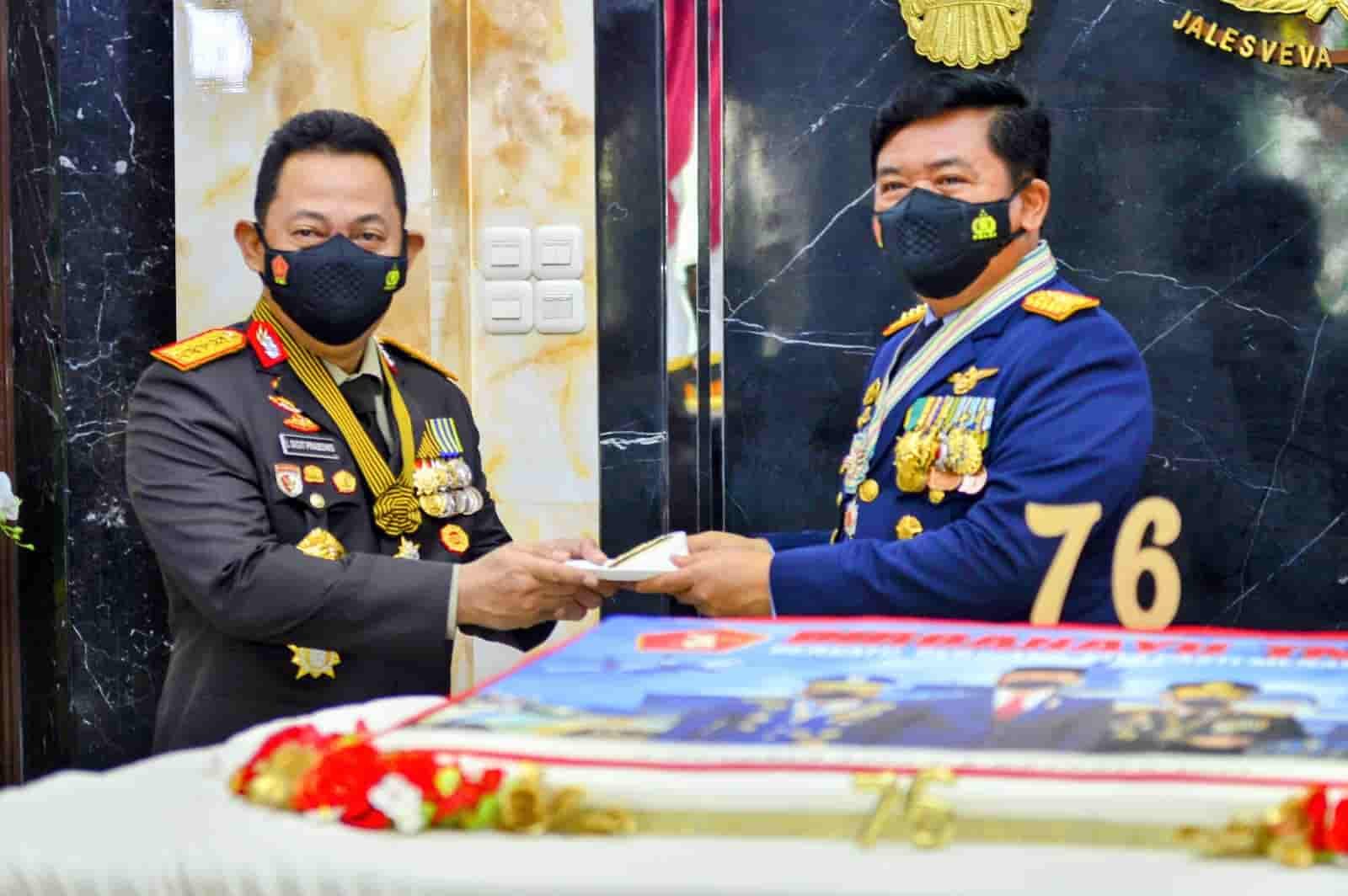 Pada momentum HUT TNI, Kapolri beserta jajaran Mabes Polri juga menyempatkan diri untuk memberikan kejutan dengan membawa kue ulang tahun kepada Panglima TNI Marsekal Hadi Tjahjanto di kantornya Subden Merdeka Barat Denma Mabes TNI, Merdeka Barat, Jakarta Pusat.