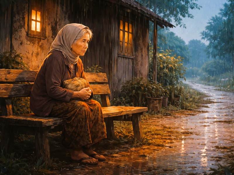 Kadang ia berbicara sendiri, seolah anaknya duduk di sampingnya. Ia bercerita tentang padi yang gagal panen, tentang atap rumah yang bocor, dan tentang betapa sepinya malam tanpa suara langkah kaki yang ia rindukan.