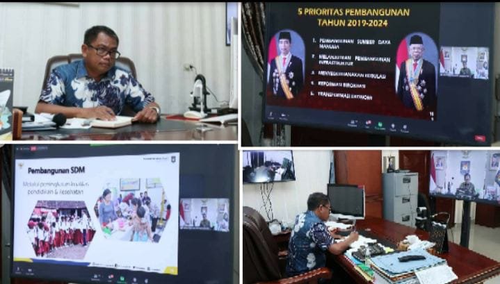 “ Pak Menteri tadi menyebut kegiatan pelatihan kepemimpinan pemerintahan daerah ini diharapkan bisa dijadikan sebagai momentum untuk introspeksi terhadap kepemimpinan selama ini. Selain itu beliau juga menekankan 5 prioritas pembangunan nasional tahun 2019-2024 yaitu pembangunan SDM, melanjutkan pembangunan infrastruktur, menyederhanakan regulasi, reformasi birokrasi dan transformasi ekonomi,” ucap Bupati.