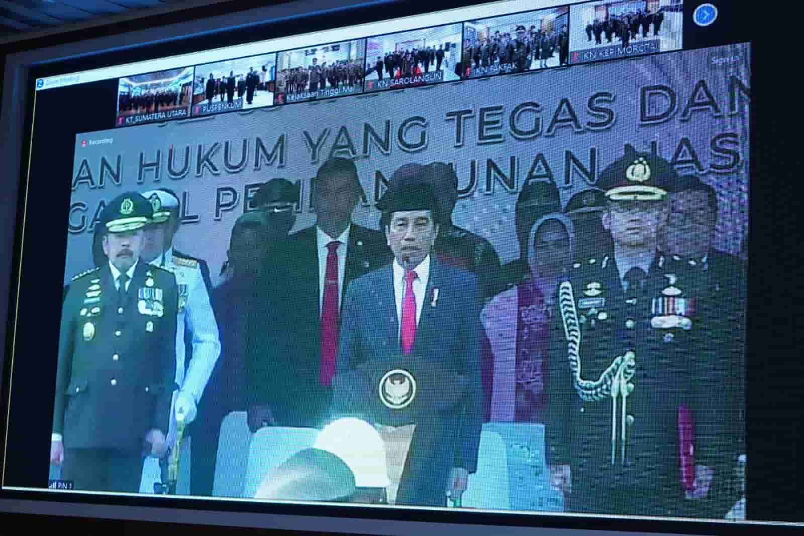 Hadir juga mengikuti upacara virtual dengan Presiden dan Jaksa Agung, Kejari Medan Wahyu Sabrudin, SH,MH, Kajari Deli Serdang Dr. Jabal Nur, Kajari Belawan Nusirwan Sahrul, SH,MH, para Kacabjari beserta para Kasi dan jajaran di tiga Kejari tersebut