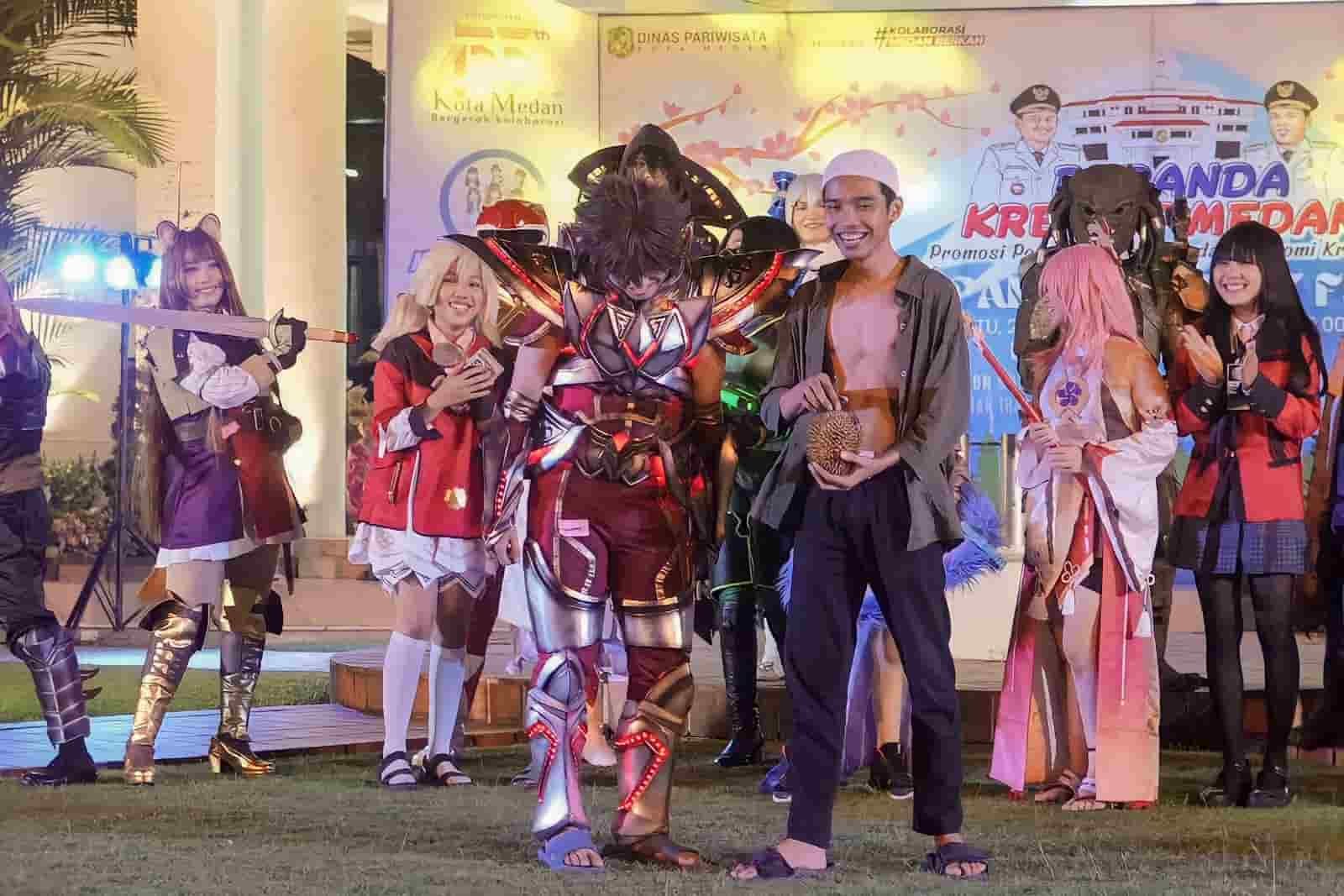 Medan, kedannews.com – Ajang Beranda Kreatif Medan, Sabtu (22/7) di halaman depan kantor Wali Kota Medan disemarakkan Japan Community Fest (J-Comm Fest). Penampilan band dengan lagu-lagu Jepang, tarian, dan cosplayer menghibur pengunjung.