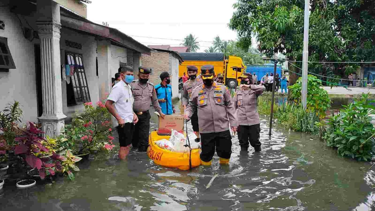 Kunjungan tersebut Kapolres didampingi PJU serta perangkat Desa Perjuangan menyambangi beberapa tempat yang terdampak langsung dan memberikan berupa Paket Sembako kepada warga korban banjir yang mengenangi pemukiman warga.