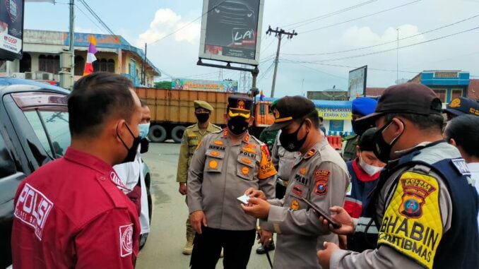 Dari Pos Pam I Check Point penyekatan, Kapolres menuju Pos Pam II Check Point mengenai Kelengkapan Sarana dan Prasarana berikut Personil yang mengawaki Pos di Simpang Empat Kelurahan Lima Puluh Kota Kecamatan Lima Puluh.