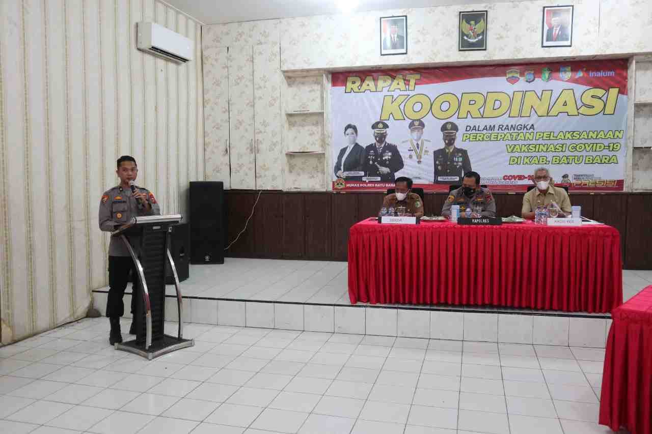 Batu Bara, kedannews.com – Kapolres Batu Bara AKBP Ikhwan Lubis SH. MH Bupati Batu Bara Ir Zahir Map, TNI dan PT Inalum, gelar rakor koordinasi (Rakor) dalam rangka percepatan pelaksanaan Vaksinasi Covid 19, selasa (22/6) di Aula Bhayangkari Polres Batu Bara.