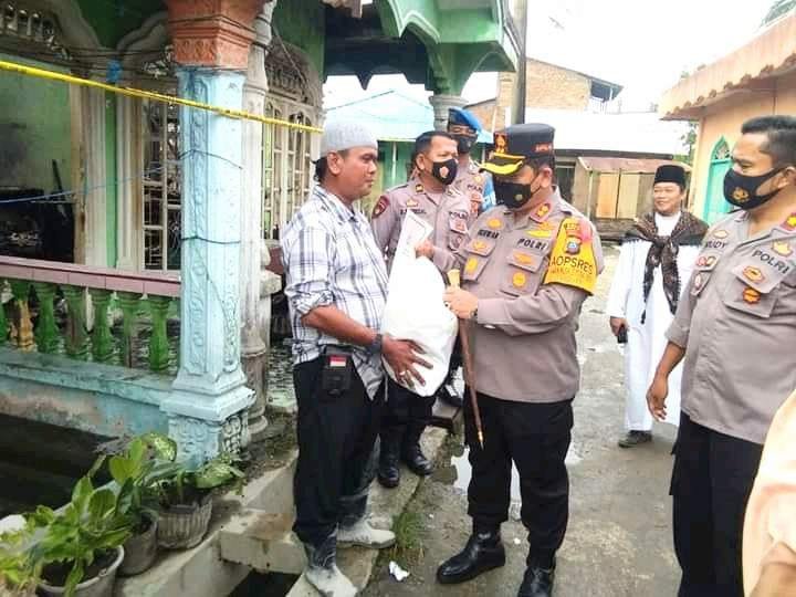 Usai melakukan patroli tersebut kapolres bersama PJU, menyambangi Masjid Al Muttaqin untuk berbagi Sembako dan Masker kepada jamaah dan warga, di jalan pinang Baris dusun X Desa Indra Yaman, Kecamatan Talawi, kabupaten Batu Bara. (Eka)