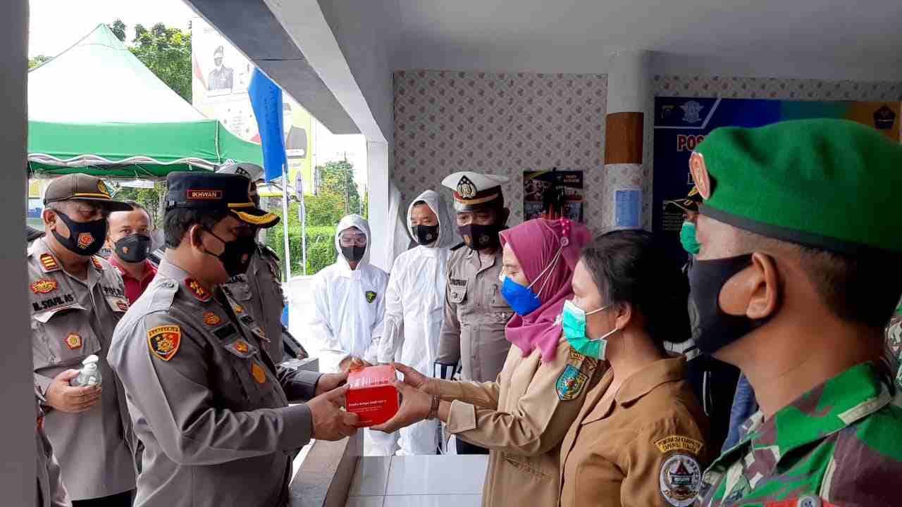 Selanjutnya usai penyerahan alat tersebut, Kapolres yang juga selalu wakil ketua gugus tugas melakukan Tracing dan Testing sekaligus melakukan Rapid Test Swab Antigen