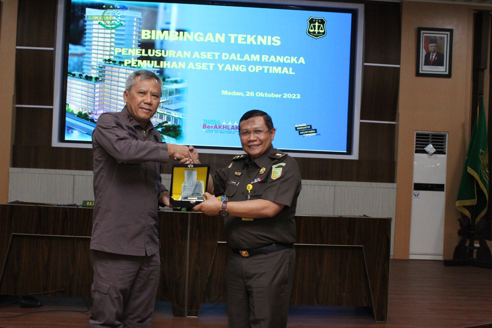 MEDAN, kedannews.com – Kejaksaan Tinggi Sumatera Utara (Kejati Sumut) mengikuti kegiatan Bimbingan Teknis Penelusuran Aset dalam rangka Pemulihan Aset yang Optimal di Wilayah Hukum Sumatera Utara yang diikuti oleh seluruh Kajari, Kasi Pidsus, Kasi Intel dan Kasi Barang Bukti di Aula Sasana Cipta Kerta Lantai 3 Kantor Kejati Sumut Jalan AH Nasution Medan, Kamis (26/10/2023).