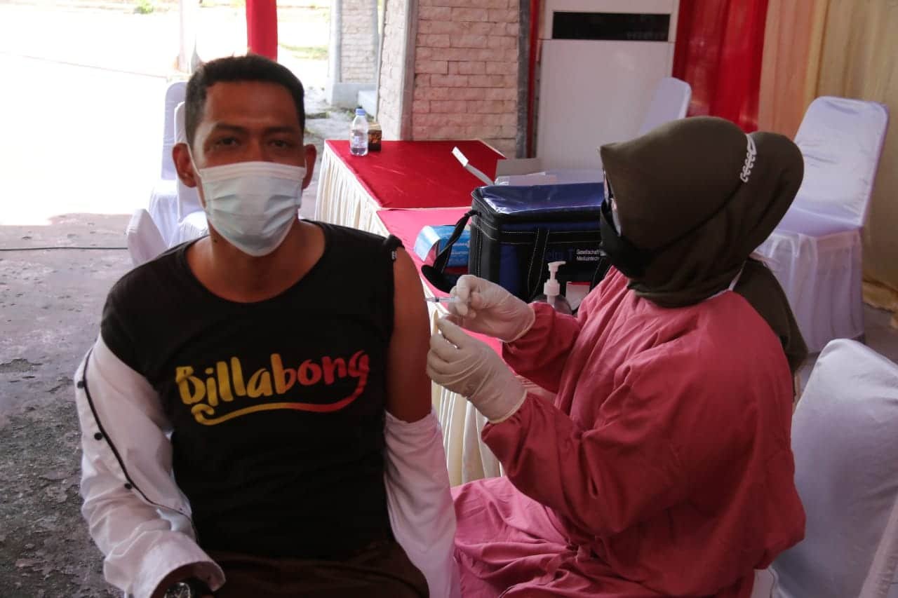Pada saat melakukan peninjauan, tampak para peserta vaksin yang berjumlah lebih kurang 200 orang dengan sabar menunggu giliran untuk mendapatkan suntikan vaksin. Proses vaksinasi covid-19 ini pun berjalan dengan tertib dan teratur.