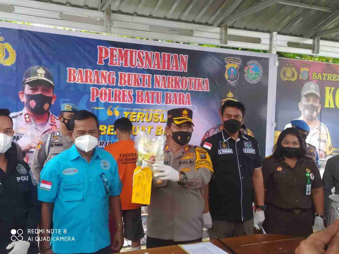 Turut hadir dalam pemusnahan barang bukti, mewakili BNNK Batu Bara, Kompol Hendra, Kejari Batu Bara, Tim Labfor Poldasu, Kasat Narkoba, AKP Sastrawan Tarigan, KBO Narkoba, AKP Yahman, Kanit II, Iptu Tamba. (Eka)