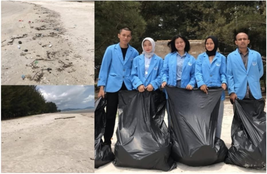 Aksi bersih sampah di sepanjang Pantai Temberan tersebut dilakukan 5 Mahasiswa UBB, lantaran disekitar pantai tersebut banyak ditemukan sampah yang menumpuk.