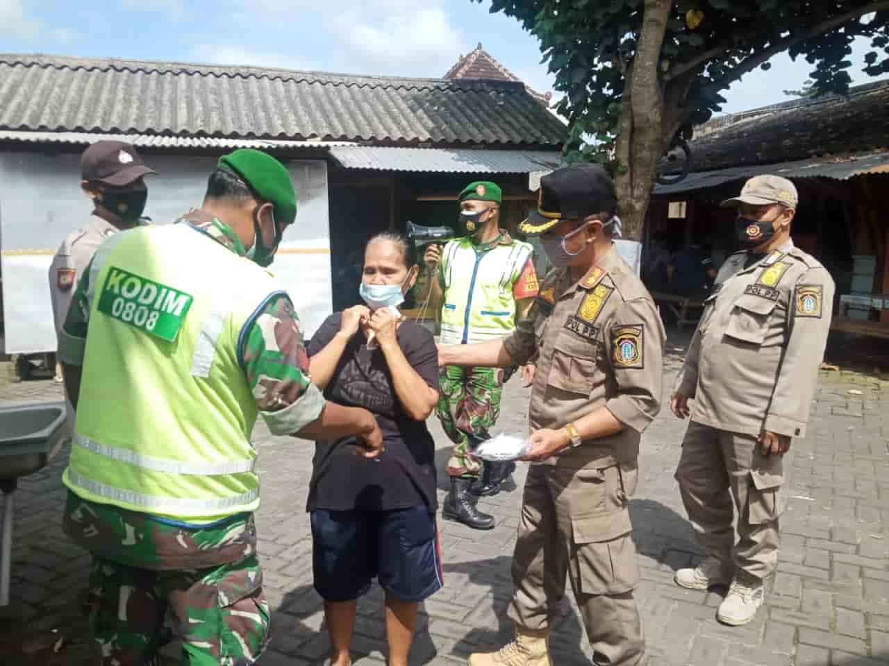 Blitar, kedannews.com – Anggota Koramil Tipe B 0808/01 Sukorejo Kodim 0808/Blitar, melaksanakan himbauan pendisiplinan protokol kesehatan Covid-19 dan pembagian masker kepada warga masyarakat, yang bertempat di area Pasar Dimoro dan sepanjang jalan Bengawan Solo Kota Blitar, Selasa (30/11/2021).