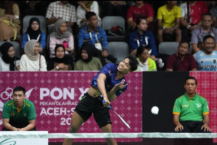 Medan, kedannews.com – M Rizky Akbar, pebulu tangkis tunggal putra asal Jawa Timur (Jatim), berhasil melangkah ke babak semifinal cabang olahraga (cabor) bulu tangkis perorangan Pekan Olahraga Nasional (PON) XXI Aceh-Sumut 2024. Dalam pertandingan perempat final yang digelar di GOR PBSI Dispora Sumut, Jalan Pancing, Medan, Selasa (17/9/2024), Akbar mengalahkan Arga Nugraha Sigfar dari Sulawesi Selatan (Sulsel) dalam pertarungan ketat yang berlangsung selama 85 menit dengan skor 20-22, 23-21, 22-20.