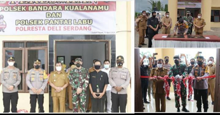 Deli Serdang, kedannews.com – Mapolsek Pantai Labu dan Polsek Bandara Kuala Namu Kabupaten Deli Serdang diresmikan oleh Kombes Pol Yemi Mandagi, SIK Kapolresta Deli Serdang bertempat di Bandara KNIA Deli Serdang, Selasa (13/4/2021).