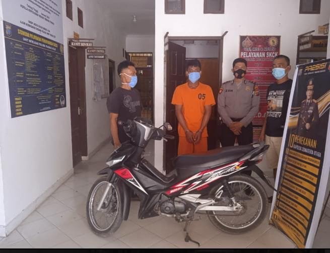 “RH ditangkap unit Reskrim Polsek Padang Hilir terkait pencurian sepedamotor yang terjadi pada Jumat (27/8/21) sekira pukul 19.00 WIB di Jalan Tusam II. Hal ini sesuai dengan laporan polisi No. LP/B/22/IX/2021/SPKT/Polsek Padang Hilir/Polres Tebing Tinggi, tanggal 3 September 2021,” ujar Agus.