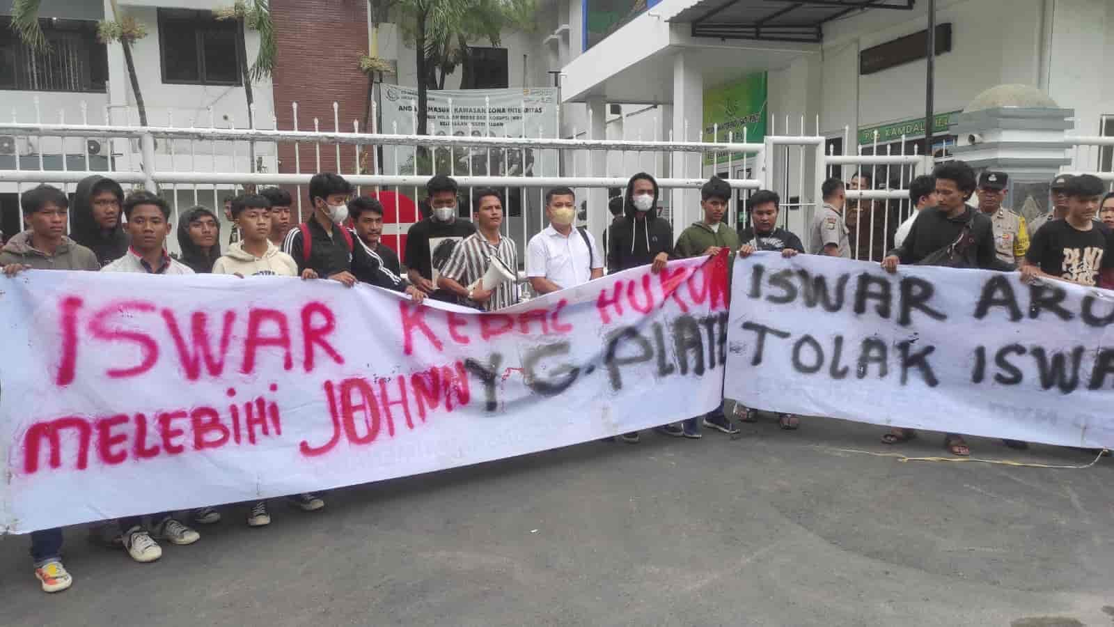 Dengan membentangkan spanduk bertuliskan “Iswar Kebal Hukum Melebihi Johnny G Plate dan Iswar Arogan !!! Tolak Iswar Sebagai Kadis Perhubungan”, para mahasiswa berharap kejaksaan memeriksa SK pelantikan dari awal hingga tahun 2023, apakah sama atau tidak nama nama tenaga honornya di dinas tersebut.