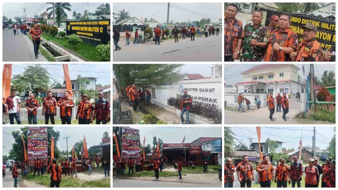 Selain berlangsung di sekretariat, aksi gotong royong juga digelar di sejumlah titik strategis, seperti di simpang Polsek Hamparan Perak, depan kantor Camat Hamparan Perak, hingga kawasan sekitar kantor Koramil 0201/12 Hamparan Perak. Kegiatan berlangsung tertib dan kondusif, mencerminkan semangat pengamalan nilai-nilai Pancasila dalam kehidupan bermasyarakat.